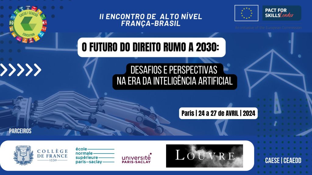Em 2024, o CEAEDD promoveu, na França, a segunda edição do seu Encontro de Alto Nível, consolidando o diálogo científico entre Brasil e Europa no campo do Direito, da Inteligência Artificial, dos Direitos Humanos e da regulação global rumo à Agenda 2030.